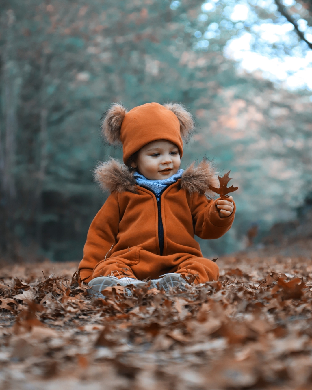Un tas de feuilles mortes ? C’est une toile parfaite pour inventer une mise en scène originale ! Allez, on sort l’appareil photo.